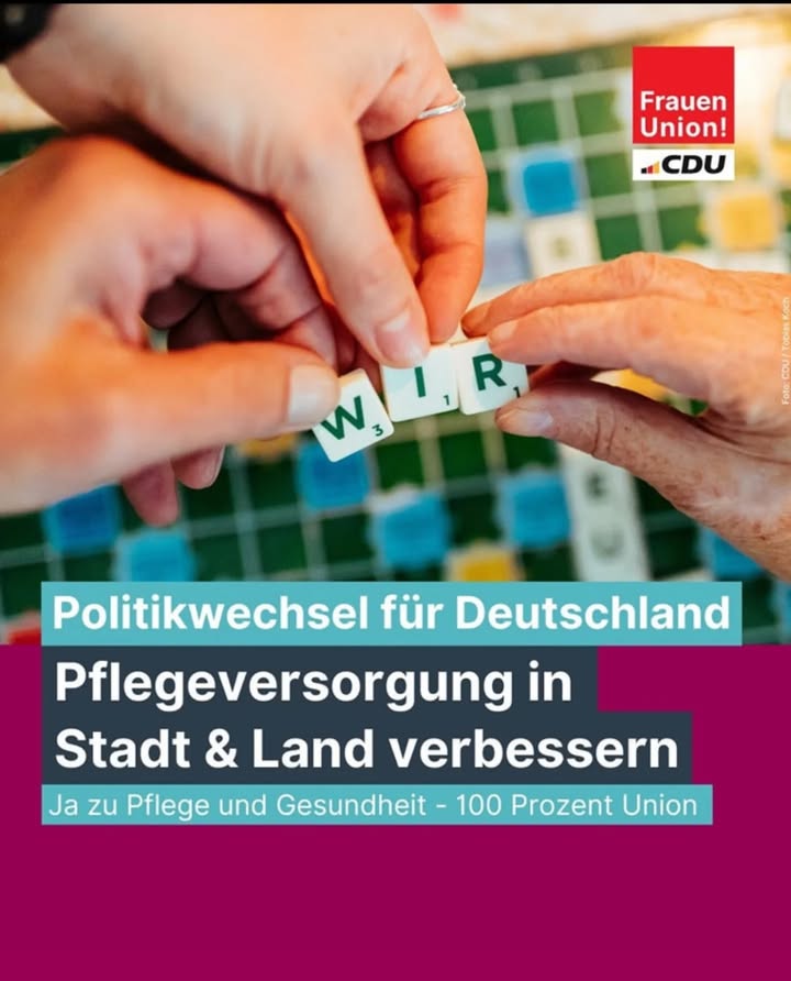 Wir wollen die häusliche Pflege und Situation der Angehörigen verbessern. ➡️ Dazu müssen pflegerische Leistungen flexibler eingesetzt werden können.➡️ Wir gehen den Personalnotstand an, indem wir den Pflegeberuf attraktiver machen. #familienstärken #wiedernachvorne #politikwechsel #frauenunionwirkt