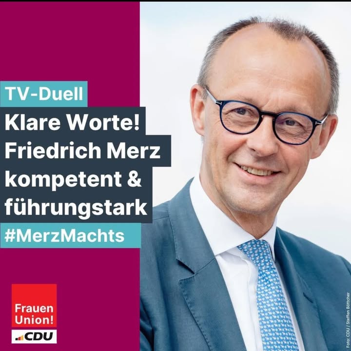 Friedrich Merz überzeugt im #tvduell 💪🏼Unser Kanzlerkandidat Friedrich Merz hat im direkten Duell gegen den amtierenden Kanzler Olaf Scholz gezeigt , was Deutschland jetzt braucht: Führungsstärke statt Selbstzufriedenheit. Klare Positionen und einen Plan für den #Politikwechsel ✅#MerzMachts #beidestimmenfürdiecdu #wiedernachvorne